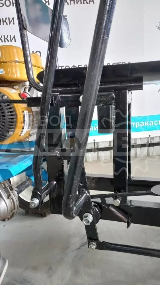 При доработке адаптера АК-1 дополнительными шкивами и ремнями возможна эксплуатация с косилкой. Шкив и ремень в комплект не входят, поэтому для установки косилки потребуется приобрести их отдельно. Навеска обеспечивает стабильное соединение и безопасное использование оборудования на участке.