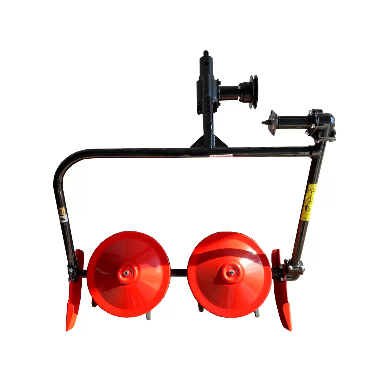 Монтаж косилки осуществляется через редуктор-переходник с шестерёнчатой на ременную передачу, что благотворно сказывается на работе агрегата, предохраняя его от дополнительных нагрузок на механизмы ВОМ.