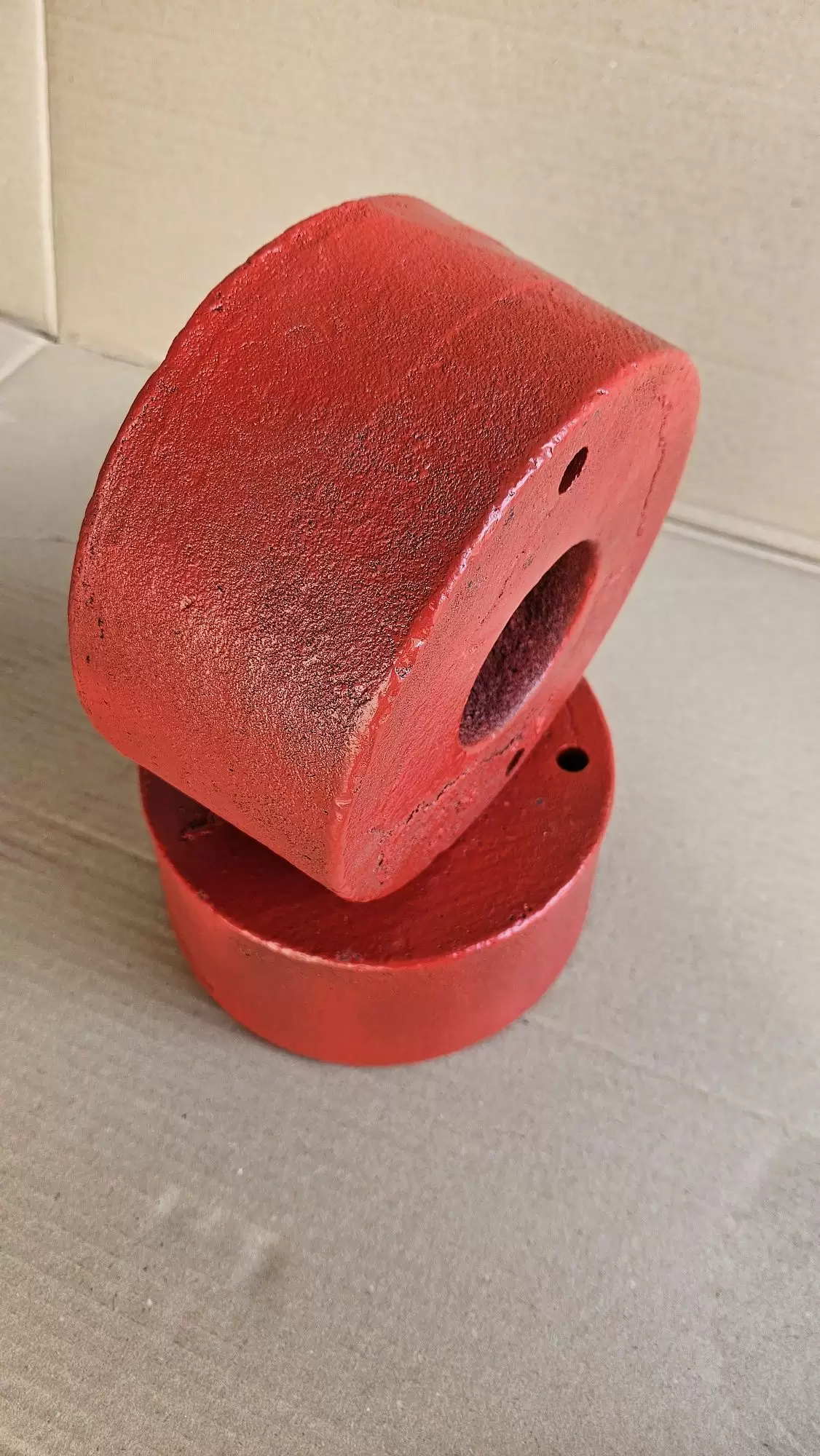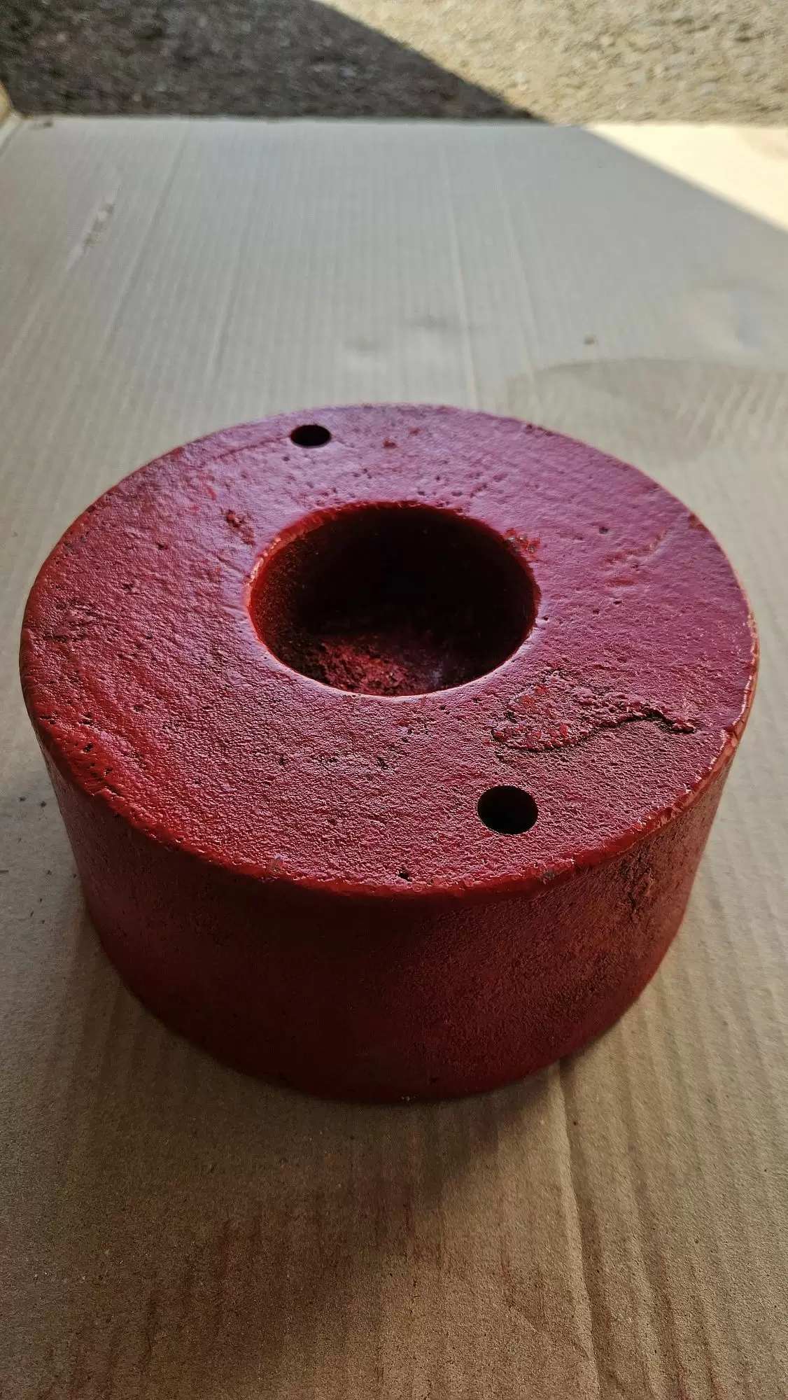 По центру утяжелителя сделано специальное технологическое углубления, для того, чтобы туда входила полуось, которая торчит с внешней стороны на мотоблоках китайского производства.