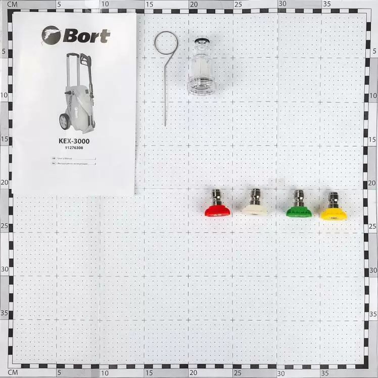 Мойка высокого давления - 1 штПистолет-распылитель - 1 штНапорный шланг - 1 штНасадки - 4 штФильтр - 1 штИнструкцияКоробкаПараметры: