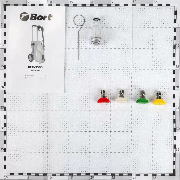 Мойка высокого давления - 1 шт.Пистолет-распылитель - 1 штНапорный шланг - 1 штНасадки - 4 штФильтр - 1 штПараметры: