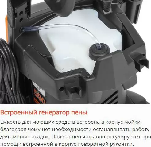 Очиститель высокого давления DAEWOO POWER DAW600 (DAW600) имеет мощный двигатель, который обеспечивает оптимальное соотношение частоты вращения и крутящего момента. Функция самостоятельного забора воды позволяет использовать для питания мойки автономные источники воды, такие как ведро или бочка. Фильтр тонкой очистки защищает внутренние компоненты мойки и очищаемую поверхность от повреждения мельчайшими твердыми частицами. Армированный шланг высокого давления имеет запас прочности, значительно превосходящий мощность насоса, благодаря чему он с легкостью выдерживает пиковые нагрузки в моменты запуска и остановки двигателя, а также обладает устойчивостью к внешнему механическому воздействию. Специальная роторная насадка формирует вращающуюся струю воды, которая воздействует на поверхность значительно сильнее, в сравнении с веерной. Грязевая фреза размывает застарелые грунтовые корки, а на максимальной мощности споспобна удалить даже старую краску и штукатурку.