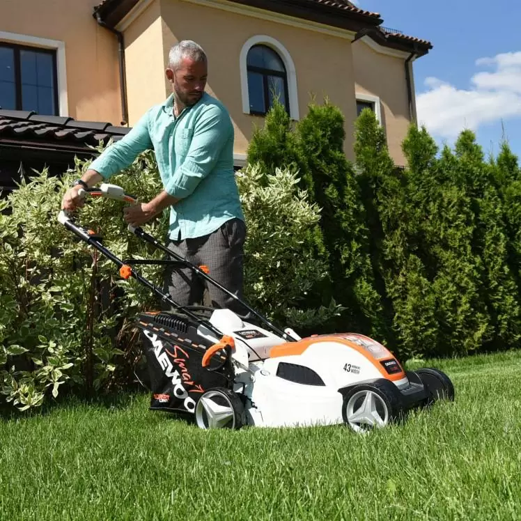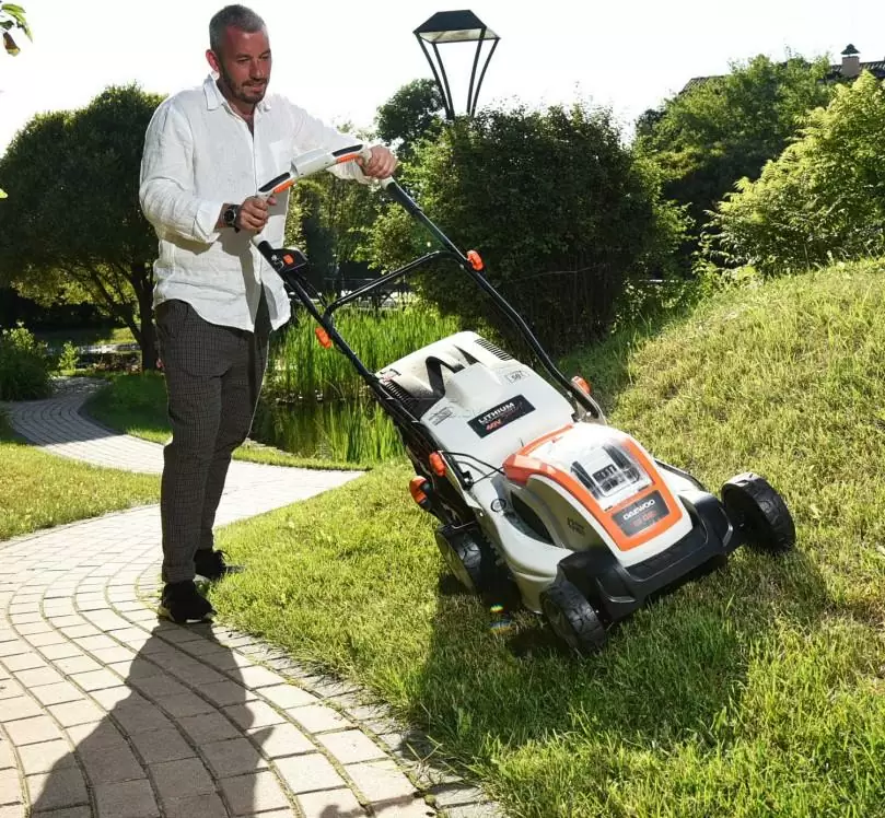 Газонокосилка аккумуляторная DAEWOO POWER DLM 4340Li Аккумуляторная батарея и зарядное устройство не входят в комплект поставки и приобретаются отдельно. Экологичный двигатель Daewoo. Стальной корпус деки с антикоррозийным покрытием. Эргономичная рукоятка управления. Центральная регулировка высоты кошения. Аэродинамический нож из высокопрочной стали. Низкий уровень шума и вибрации. Вместительный травосборник на 50 литров. Складная конструкция. Аэродинамический нож высокой прочности не требует частой заточки благодаря специально подобранному углу атаки режущей кромки. Настройка режущей деки производится в одно движение - путем смещения рычага, удобно расположенного на панели управления, который изменяет высоту подъема колес.
