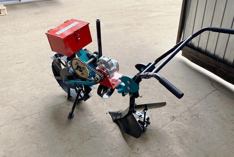 Моноокучник комплектуется регулируемым окучником, что позволяет адаптировать рабочие параметры под тип почвы и условия обработки. Конструкция предусматривает возможность применения различного навесного оборудования. Двигатель в комплект поставки не входит и приобретается отдельно.