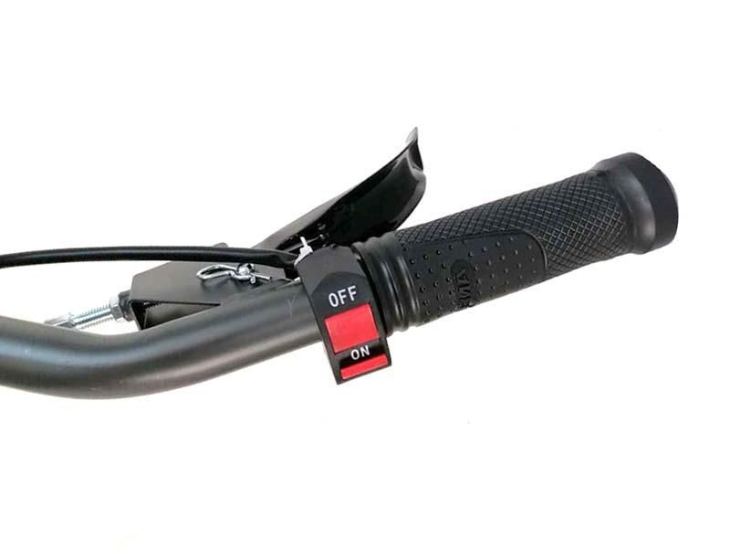 Для удобства оператора руль имеет регулировку по высоте и поворот в сторону. Ременной привод надежно защищает двигатель от перегрузок при работе на сложных участках.