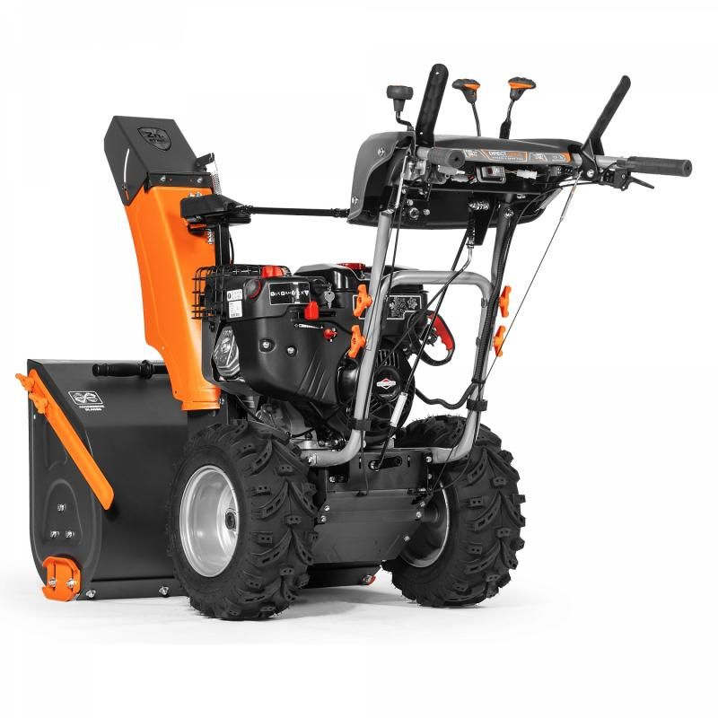 - Панель управления с системой изменения скорости передвижения, направления и дальности выброса снега обеспечивает комфортное управление и работу со снегоуборщиком.