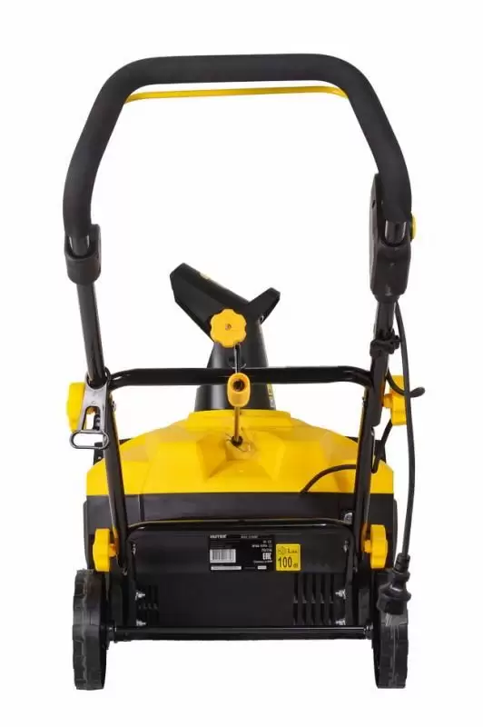 - Основным элементом, приводящим в движение электроснегоуборщик, является электродвигатель, питание которого осуществляется от однофазной электросети (220 В). Электродвигатель приводит в действие шнек (стержень со сплошной винтовой стенкой), выбрасывает снег через поворачиваемый желоб на 3-7 метров в нужную сторону. Угол поворота желоба составляет 360 градусов.